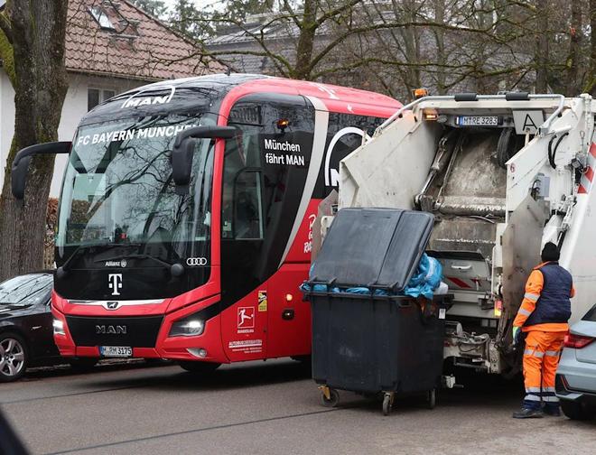 不过途中出现了一个小插曲:当载着球员的大巴准备驶入入口时,一辆垃圾车一度阻挡通道,造成约五分钟的延误。短暂等待后,所有人下车,其间主教练孔帕尼心情格外愉快。
